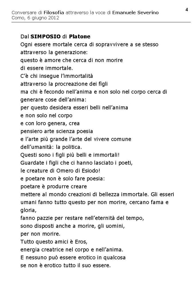 Un ulteriore passaggio avviene attraverso la lettura di una parte cruciale del SIMPOSIO di Platone
