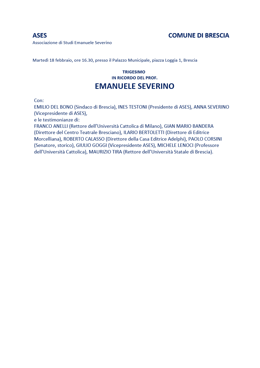 ASES (Associazione Emanuele Severino) e COMUNE DI BRESCIA