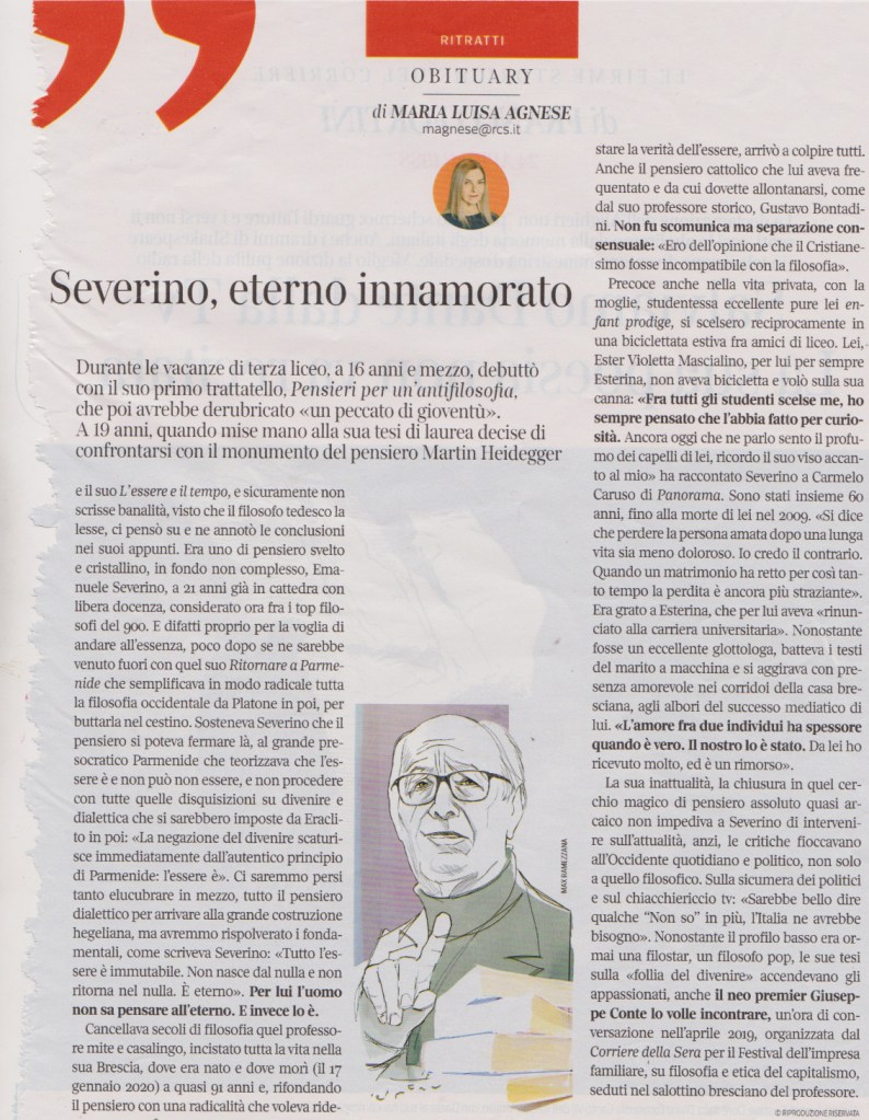 Severino, eterno innamorato, di Maria Luisa Agnese, in Settecorriere.it, gennaio 2021