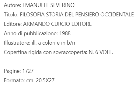 FILOSOFIA STORIA DEL PENSIERO OCCIDENTALE, E Severino, A Curcio 1988, 6 Voll – Annunci Milano