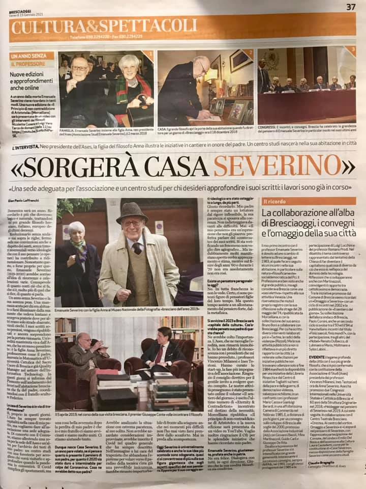 “Sorgerà Casa Severino“, da BresciaOggi del 15.01.2021 #EmanueleSeverino
